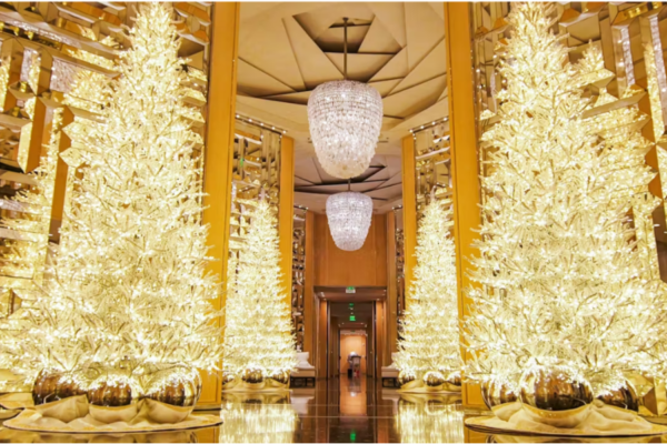 Discover festive light installations, beautifully decorated trees, and shimmering pathways that bring the spirit of the season to life.